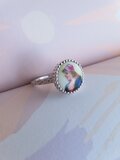 とてもとても素敵なリングを早々に届けて頂きありがとうございます。ひとつひとつの図形を縁取るミルと、光を反射する面の組み合わせが綺麗で繊細で、嬉しくて何度も手元を見ています。サイズが11号だったことも幸運でした。 アルテサニアサヤ様の作品に出会えたことに感謝です。作品集とともに、大切にさせて頂きますね。この度は本当にありがとうございました。