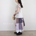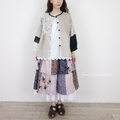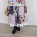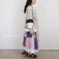 リネンパッチティアードスカート(モーブ) - そよぐ布の物語 -