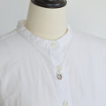 チェーンは45cmにアジャスターを5cm足しましたので、写真のようなシャツや、冬はニットなどにもお使いいただけるようにしました。