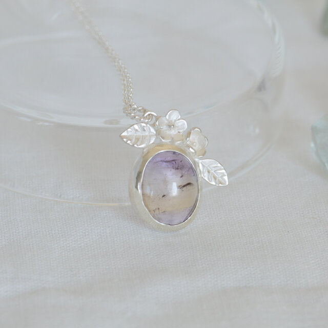 仕上げはノイバラ部分を白っぽく仕上げて、アメトリンの艶やかでしっとりした色味とのコントラストが楽しいネックレスになりました。