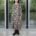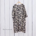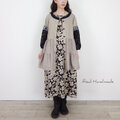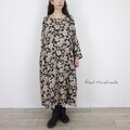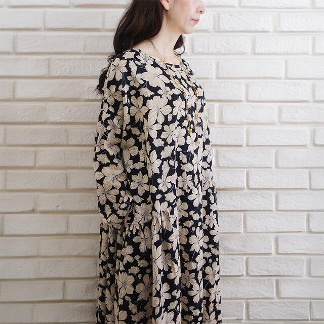 フラワーシルエットリネン・サイドギャザーワンピース(エンジェルソフト加工)