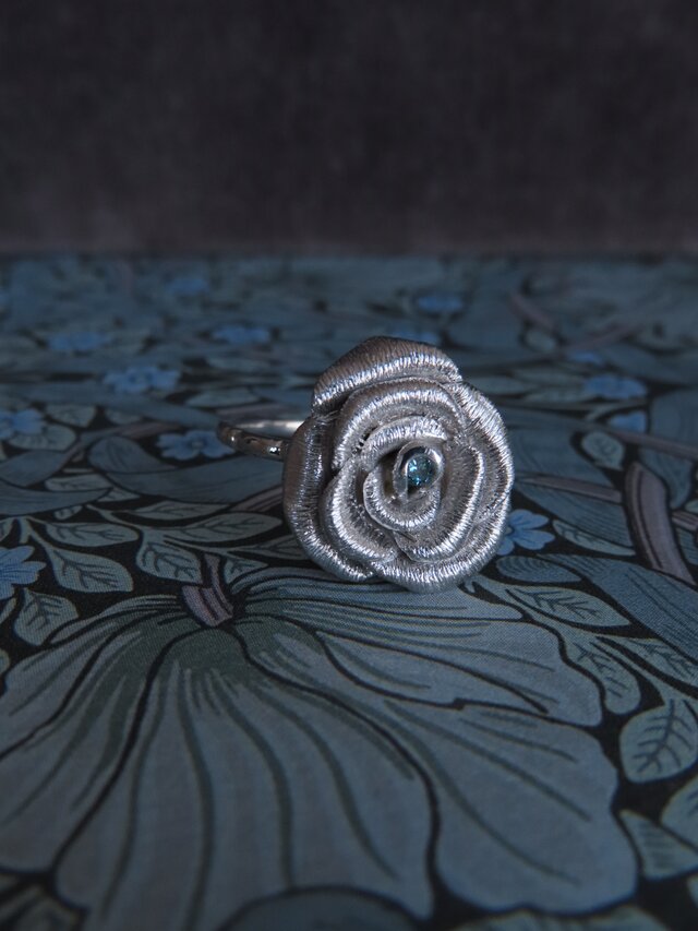 バラのモチーフを立体的に表現したリング。