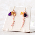 マイクロカットのシトリン(オニオンシェイプ)と、深みある紫のアメジスト(シャンデリアシェイプ)、