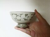 素地に白い化粧泥を掛けエンレイソウを描いてから余分な化粧泥は削り落として図柄だけを残しています。