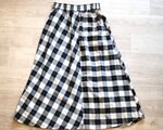チェック模様をセンター切り替えで左右アシンメトリーに配置し、動きのある印象を持たせました。赤糸ステッチがさり気なく効いてます。