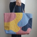 色とりどりの綿素材を使ったカラフルなパッチワークは、目を引くデザインながらも、落ち着いたカラーリングでコーディネートに自然になじみます。