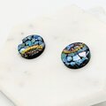 ブルー螺鈿金継ぎ風ラウンドピアスイヤリング2250マグネット