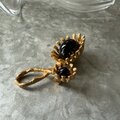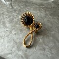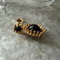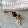 ブラックグラスカボションがアクセントのフラワーをモチーフにしたゴールドトーンブローチ。