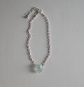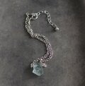 すりガラスのようなアクアマリンの原石ビーズと、シルバーチェーンのブレスレットです。