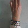 夏はシンプルで涼しげなお洋服に、冬はローゲージニットなどの袖口にぴったりなブレスレットです。