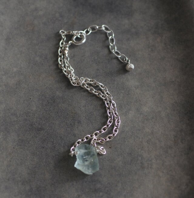 シルバーチェーンは、アクアマリンとのバランスを見て、幅が約2mmのものを選びました。表面にストライプの模様が入っていて、繊細で柔らかな印象のチェーンです。
