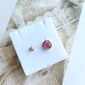 [SV925/k18GP]Shouju-薔珠- ルビー パール ルベライト ピアス 鎚目 フレーム 額縁 絵画 天然石 真珠