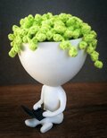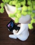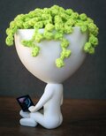 設計は二部構成ですが、完成品は前提として組み立て済み・すぐにお使いいただける状態でお届けします。腕の部分の支えが必要になるのは本体だけという点は、元デザインの特徴を示しています。棚や机、窓辺など、場所を選ばずに置けるこのアイテムは、見に来る人も自分自身も微笑みを誘います。小さな創作のディテールを楽しみたい方には、植物コレクションに一歩の遊び心を加える素敵なアイテムです。三つの印刷用デザインが用意されており、場面に合わせて画面のデザインを切り替えたり、自分のデザインをプリントして個性を演出することもできます。写真に写っている髪飾りは含まれていませんので、ご了承ください。