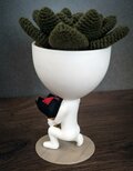 ロバート・プラントとバラの花束は、どんな空間にも優しく温かな雰囲気を添える卓上のデコレーションアイテムです。デザインは本体、花束、台座の3つのパーツから成り、花束は薔薇の花、枝、そして wrapping から構成されています。wrapping は2色使いで、見る角度によって表情が変わるニュアンスを生み出します。花束は本体にはめ込まれ、本体は台座の上に置かれて安定したディスプレイを実現します。鉢のサイズは直径80ミリ、高さ60ミリで、排水機構が備わっており、設置場所を選ばずに美しく見せてくれます。全体は完成品としてそのままお使いいただける状態でお届けしますので、追加の組み立てや準備は不要です。デザインは穏やかな形と自然のラインを意識して作られており、机の上、棚の上、リビングのコーナーなど、さまざまな場所で落ち着きのあるアクセントとして活躍します。花束の三部構成の美しさと、2色の wrapping が生むコントラストが、日常の中に少しの華やぎを添えてくれることでしょう。ご家庭への贈り物としても、インテリアのちょっとしたポイントとしてもぴったりです。写真の中に写る髪飾り風の装飾は商品には含まれませんのでご了承ください。