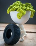 デスクや棚の片隅に、優しく楽しい雰囲気を添える置物です。2点セットで構成されており、ロバート・プラントの像とタイヤが組み合わさって、クロスフィットのタイヤフリップの瞬間を再現します。鉢の部分は直径80 mm、高さ60 mmで、排水機能を備えています。2つの部品はぴったりと組み合わさるよう設計されており、完成した状態で棚やデスク、窓辺に置いてすぐにお楽しみいただけます。出荷時には完成品としてお届けしますので、すぐにディスプレイにお使いいただけます。安定させたい場合には部品を接着するとさらに安定しますが、日常的な展示としては十分にしっかりとした作りです。植物を主役にしつつ、タイヤを持ち上げるポーズが空間に遊び心を加えます。小さながらも明るいアクセントとして、部屋を邪魔することなく雰囲気を引き立てます。写真に写っている髪の装飾は付属しませんのでご了承ください。