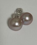 肌馴染みの良い、モーブカラーの淡水真珠ピアスです。