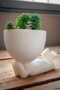 ロバート プラント ポット 靴を履いた横たわる姿を再現した、小さな鉢の置物です。ペルーのアンデス地方で伝えられる靴、yanquis(ヤニクス)またはojotasにヒントを得たデザインで、靴の底にはタイヤの刻みが見えるユニークな仕上がりになっています。古タイヤの再生ゴムを材料として作られている点も魅力のひとつです。植木鉢本体は直径80 mm、高さ60 mmで、排水孔がついています。組立不要の完成品としてお届けしますので、すぐに窓辺や棚、デスクの上に置いてお楽しみいただけます。小さな植物やサボテンなどを入れて、スペースを取らずに部屋の隅を和ませるアイテムとしてぴったりです。贈り物としても喜ばれやすく、デスク周りやキッチン、リビングのコーナーにささやかな個性を添えてくれます。なお、写真に写っている髪飾りは付属しませんのでご了承ください。