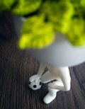 ロバート・プラント サッカー選手 - しゃがみ姿は、小さな植物と一緒に飾ると楽しい雰囲気を作るディスプレイアイテムです。本品はロバート・プラントのフィギュアとサッカーボールの2つのパーツから構成され、ぴったりと組み合わさって一体感のあるディスプレイを作り出します。鉢は直径80mm、高さ60mmで、排水穴がついています。二つのパーツはしっかりと合わさる設計で、安定感のある可愛らしいシーンを演出します。
