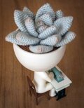 ROBERTA PLANT - SEWING MACHINE は、小さな植木鉢とミシンのモチーフが組み合わさった、温かみのあるディスプレイアイテムです。鉢には直径80mm、高さ60mmの空洞があり、排水孔が付いています。デザインは本体、ミシン、椅子の三つの要素から成り、それらがぴったりと組み合わさる様子を楽しめます。元のデザインは複数部品で構成されていますが、この出品はすぐに飾って楽しめる単一の完成品としてお届けします。ミシンは鉢の横に配置され、椅子が場面を完成させます。全体のバランスは棚や窓辺、デスクなど日常のスペースにやさしく馴染むように設計されており、小さな植物と合わせると日々の癒しとなる風景を作り出します。鉢の受け皿のサイズを確認して、ぴったりの植物を選んでください。写真に写っている髪飾りは同梱されません。