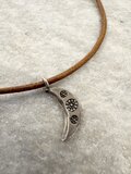 月をモチーフにしたカレンシルバーのチャームが可愛い革紐チョーカーです。