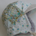 ニュアンスカラーが可愛らしいパッチワークの冬用トラッパーハットです。