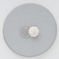 真っ白な紙の花びら組み合わせ、小さな手毬のような愛らしいフォルムに仕上げました。 花芯には金色のブリオンをあしらい、純白の中にきらりと光る上品なアクセントを添えています。