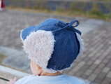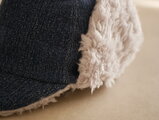 ブラッシングデニムとプードルファーのトラッパーハットです。