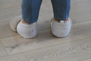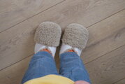 シープボアとブラッシングデニムを切り替えたルームシューズです。