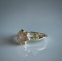 明るいグリーントルマリンを葉のように添えて、花と枝葉がひとつになったようなデザインに仕上げました。