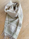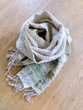 シルク紬糸とリネンで穏やかな色合いのストールを織りました。