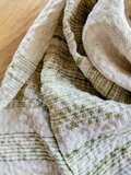 グリーン系のシルク糸は草木染めした袋真綿を手紡ぎしたものです。均一に紡げなくて太い所と細い所がありますが、それが良い表情を出しています。