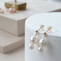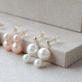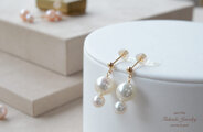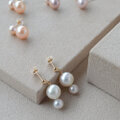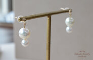 このピアスは18金の素材にアコヤ真珠2粒を重ねた、