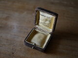 ブラウンレザーに内側はイエローがシックなアンティークジュエリーケースです。