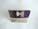 中央にベージュのサテンリボン飾った可愛いポーチです。