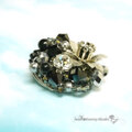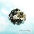 シルバーとブラックのコントラストがシックに映えるフラワーブローチです。