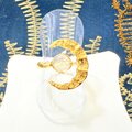 テクスチャを施した三日月が、空に浮かぶように石をやさしく包み込みます。