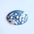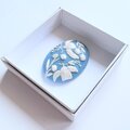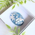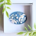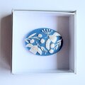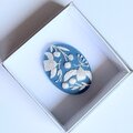 手のひらにのる小さなブローチの上に