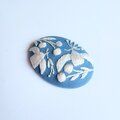 サーモンピンクの地に黒い花の刺繍、ありそうでなかったこの色のとりあわせ、すてきなブローチでした。