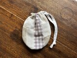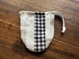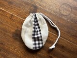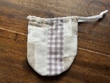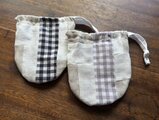 フリークロスの制作過程で出るハギレを使って、つぎはぎ巾着を作りました。