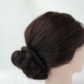 コーム部は薄い金属製の六本足。予め髪をお団子やシニヨンにまとめ、横からスッと挿し込みます。