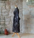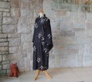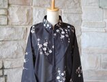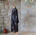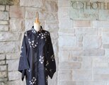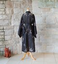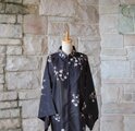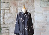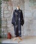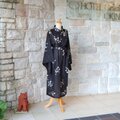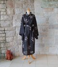 レトロクラシカル 黒地に桜 大正ロマンの雰囲気 着物スリーブワンピース 着物リメイク 一点物