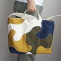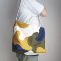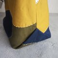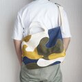 このバッグは、ミリタリーテイストのカモフラージュ柄をベースに、複数の綿素材を組み合わせたパッチワークデザインが魅力。