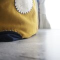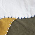 さらに、一つ一つのピースを縦まつり縫いという縫い方で繋ぎ合わせることで、手縫いの柔らかな印象を与えつつアクセントにもなっています。