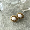PM48-【 Monet 】モネ・ヴィンテージピアス 170〜80s White cabochon oval gold-tone