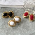 ホワイトカボションが上品な、ゴールドトーンオーバル型ピアス。