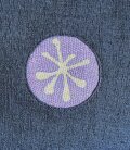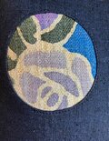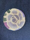 濃紺の紬に丸窓を開け、バティックの型染めを嵌め込みました。