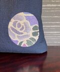 ざっくりとした麻地のバティックは、紫、ブルー、グレーと爽やかな色合いで濃紺の紬によく映えています。