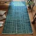 こちらは、トルコのヴィンテージラグをオーバーダイ加工で再構築した、世界にひとつの特別な一枚。99×202cmというサイズ感は、ソファ前やベッドサイド、廊下やワークスペースなど、どこに置いても映える万能サイズです。