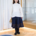 ホワイトリネンとレースの組み合わせは、デニムに合わせてカジュアルに、