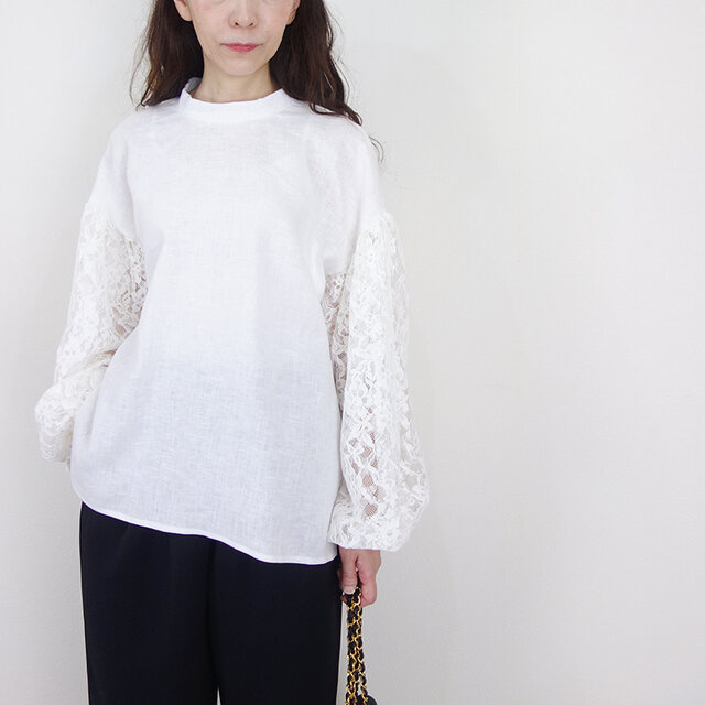 上質で美しいコードレースを袖に合わせてプルオーバーを制作しました。